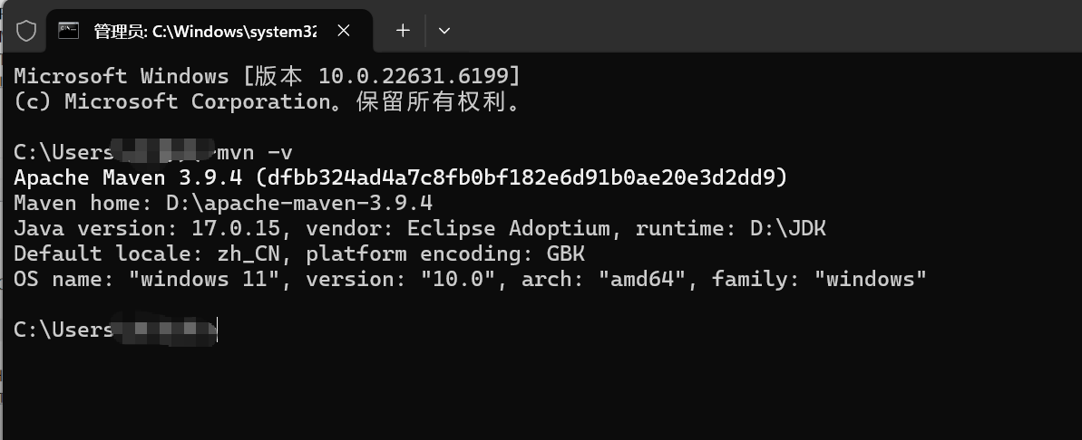 验证maven是否安装成功,可以使用mvn -v查看版本号