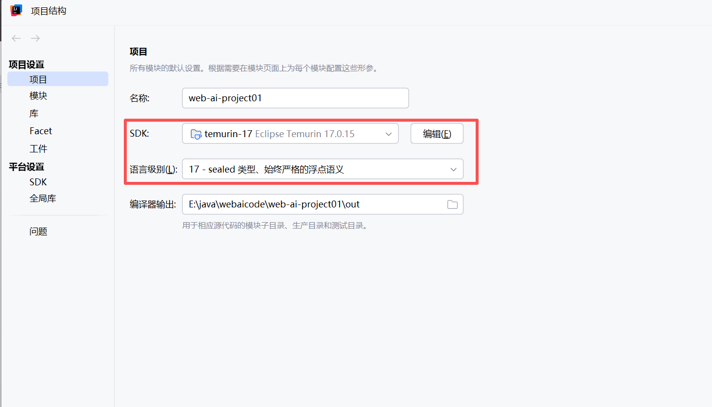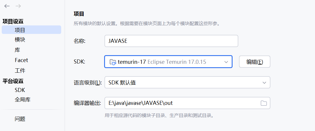 新建一个空项目后,在项目中要设置SDK和语言级别