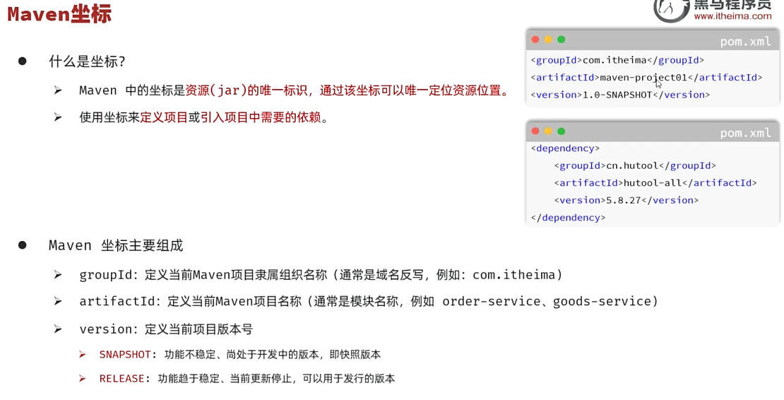 maven中的坐标是资源(jar)的唯一标识,通过该坐标可以唯一定位该资源的位置
