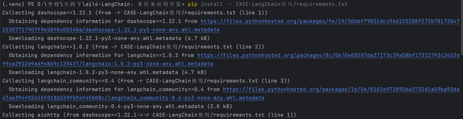 按照requirements的版本进行库的安装,包括dashscope、langchain-community等