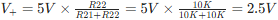 - 分压输入 :R21 与 R22 对 5V 等比分压,同相输入端(3 脚)电压为: