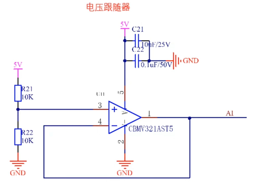 - 作为阻抗转换缓冲,连接高阻抗分压电路与低阻抗负载。