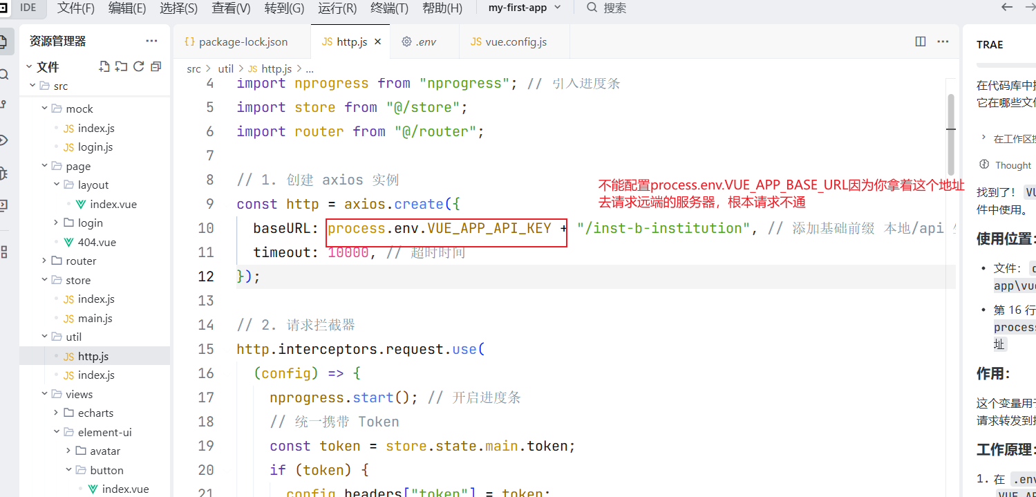 3不能在创建请求实例的时候用baseURL,去放env里的变量,因为直接放会跨域,那里需要用代理的开发服务器读取,env里的变量存的一般是目标服务器