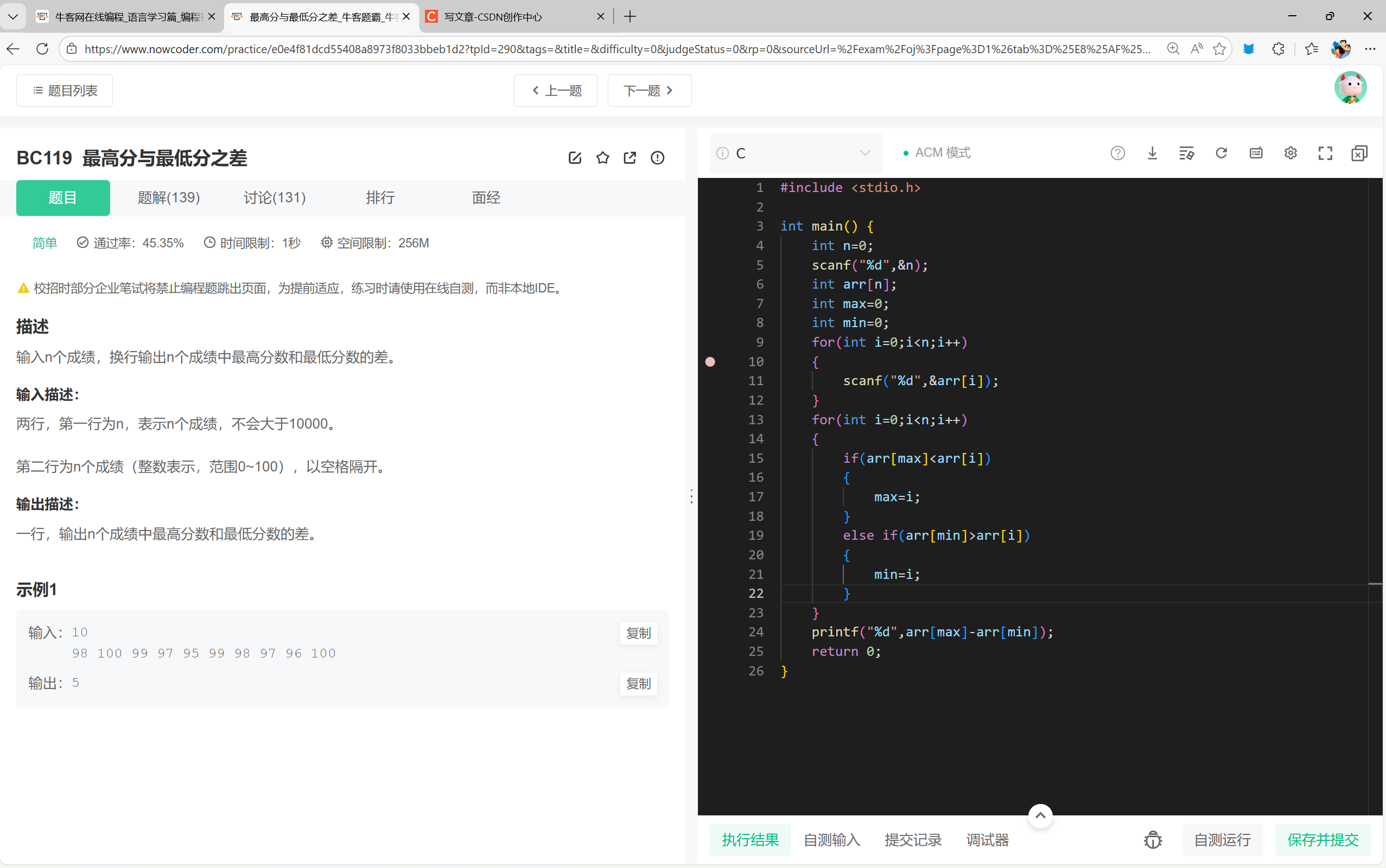 printf("%d",arr[max]-arr[min]);