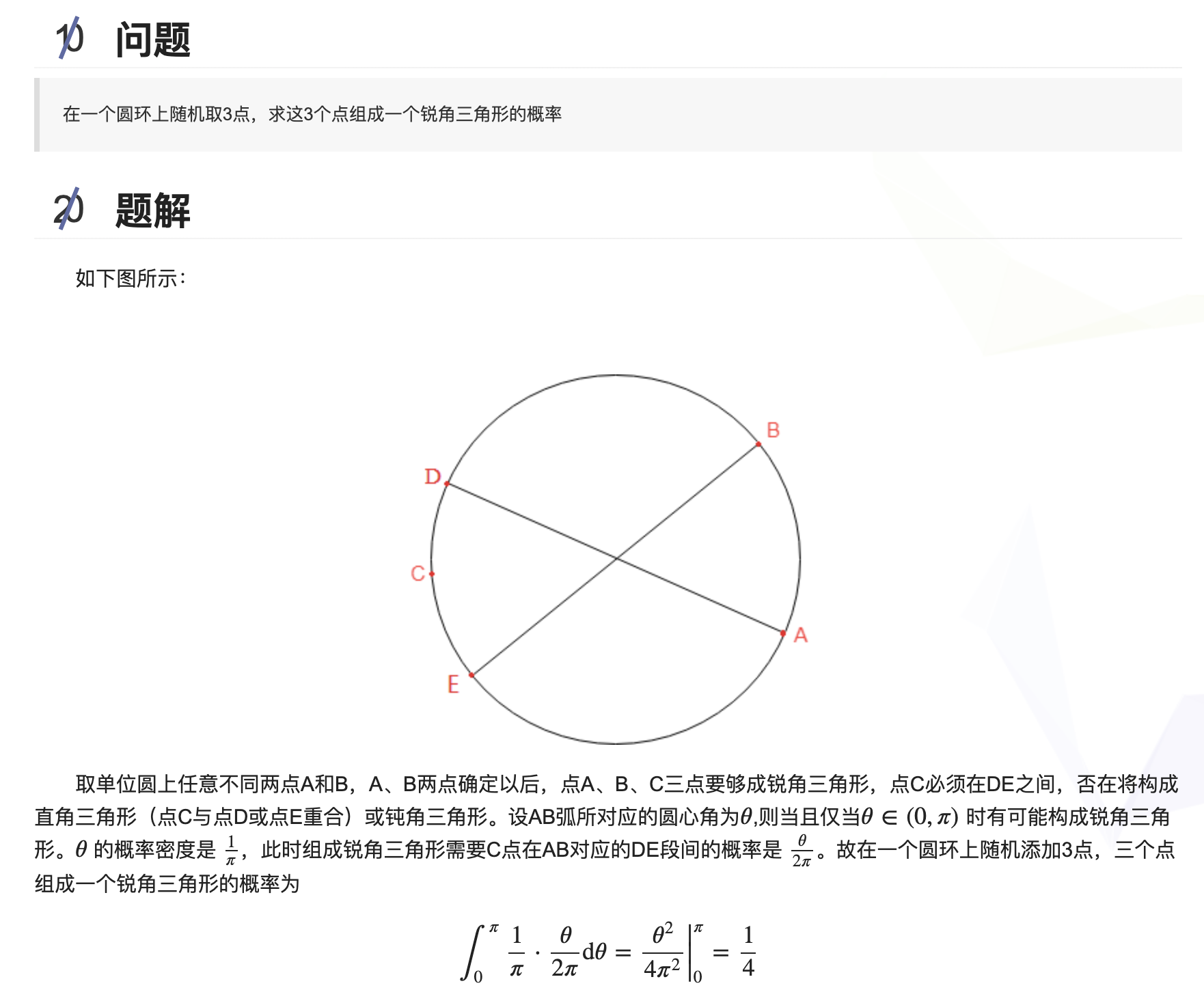 4只鸭子,随机在池塘中游走,请问四只鸭子能分到同一个半圆的概率是多少?