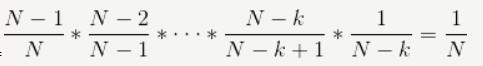 问题1 : 有一个箱子,N把钥匙,只有一把钥匙能打开箱子,现在拿钥匙去看箱子。问恰好第k次打开箱子的概率?