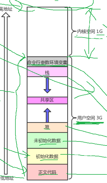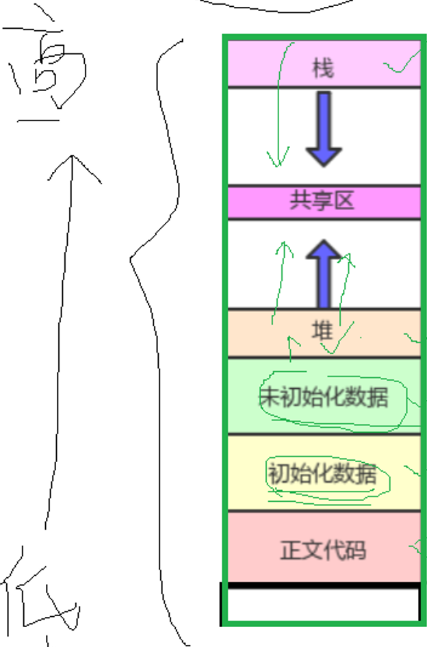 在学习C/C++语言时,我们了解到内存布局大抵如下图所示