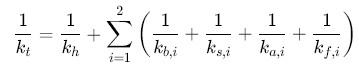 k_single = 1 / (1/k_h + 1/k_b + 1/k_s + 1/k_a + 1/k_f);