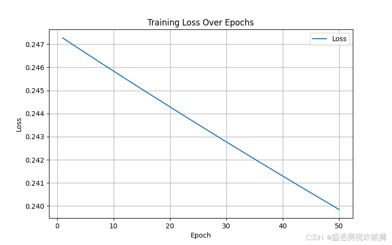 print(f'Epoch [{epoch+1}/50], Loss: {loss.item():.4f}') # 打印损失值