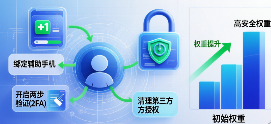 - 安全裸奔: 未开启两步验证(2FA),导致账号权重极低。