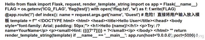 Hint: 49 = ?"尝试 /?name={{7*7}} 来检查是否执行了表达式