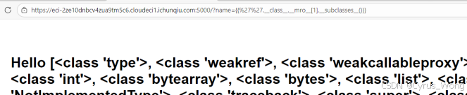 如果确认SSTI存在,可以尝试读取敏感信息,获取文件系统信息/?name={{''.class.mro[1].subclasses()}},确实返回。