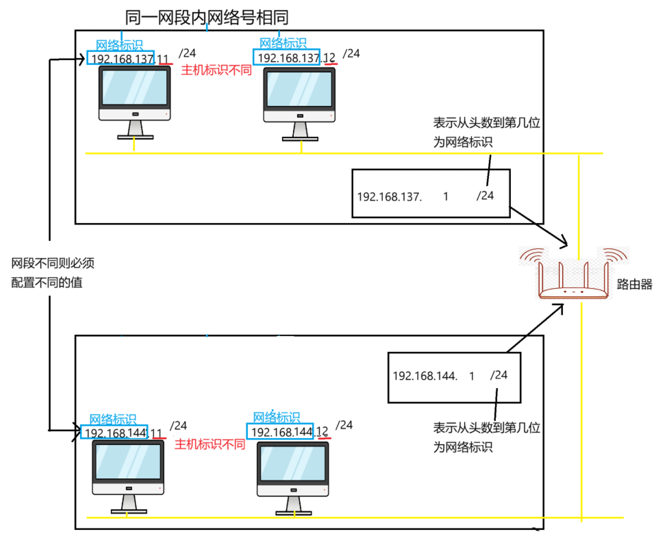 **主机号:**同一网段内,主机之间具有相同的网络号,不同的主机号