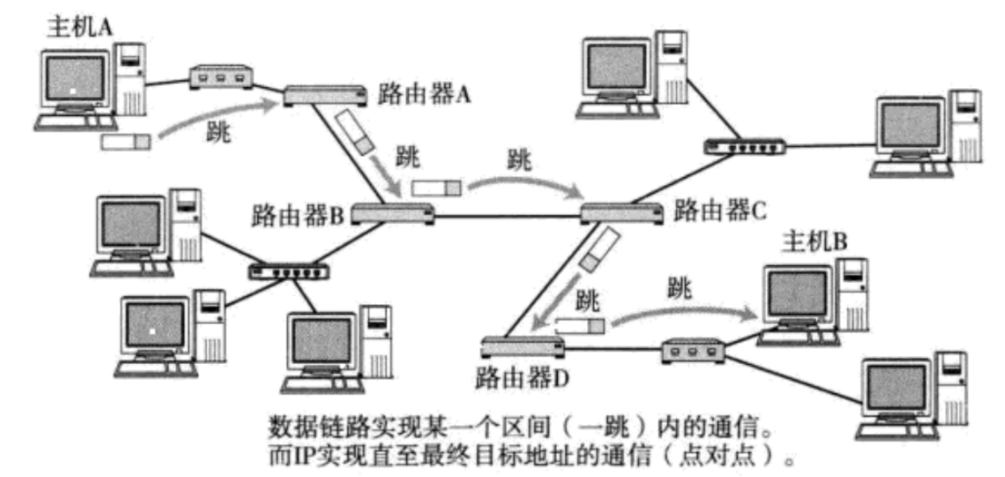 IP 数据包的传输过程也和问路一样,数据转发的时候到达路由器,每个路由器都会知道一些周围的情况(维护一个"路由表")