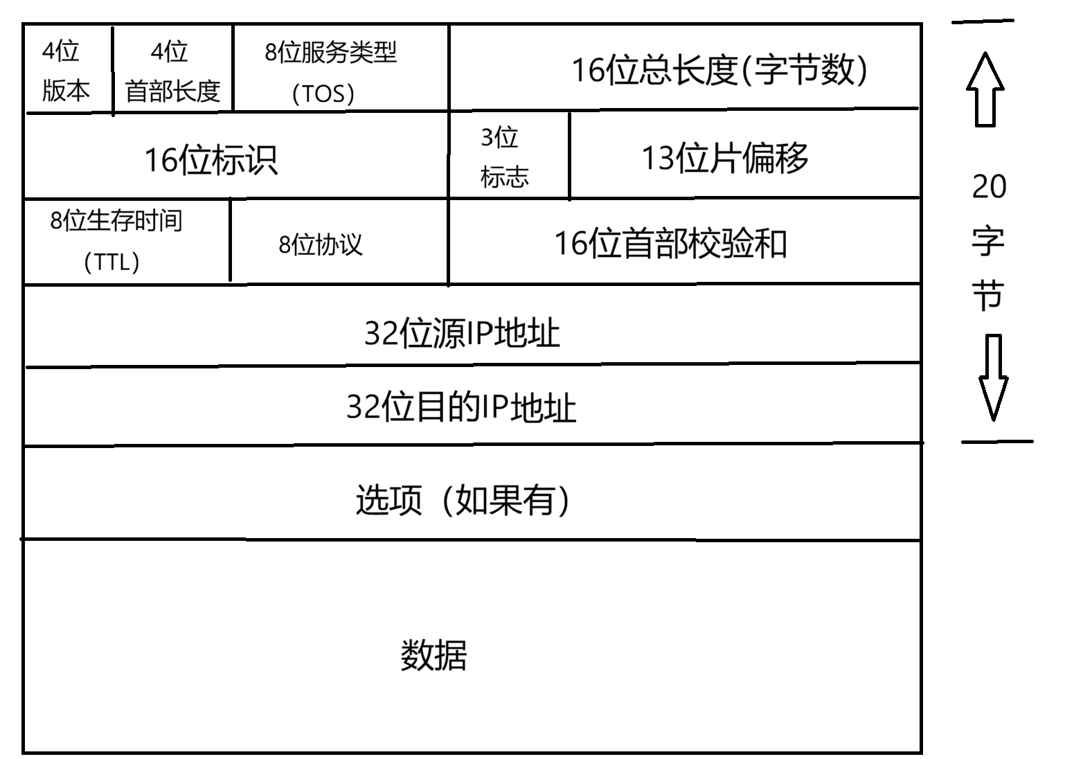 - **16位首部校验和:**仅对头部进行校验,用于验证传输是否正确