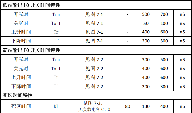 内部死区时间:130ns(典型,范围80-400ns)