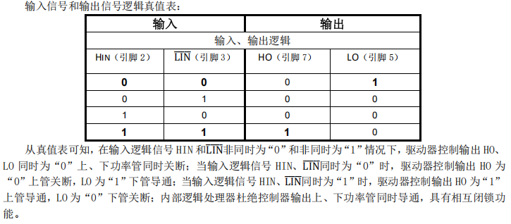 - HIN(引脚2):高电平有效,内置15kΩ下拉电阻。