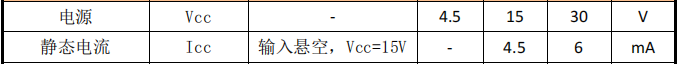 VCC 工作电压范围:4.5V 至 30V