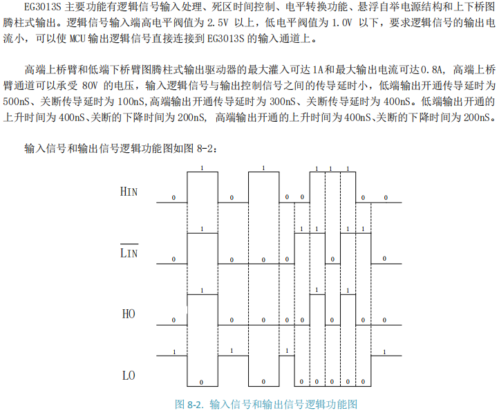 EG3013S 通过 "VCC下限降至4.5V" 和 "引入HIN高/LIN低的混合逻辑" ,在EG3012S的基础上实现了面向超低压供电与高安全性控制的双重进化。