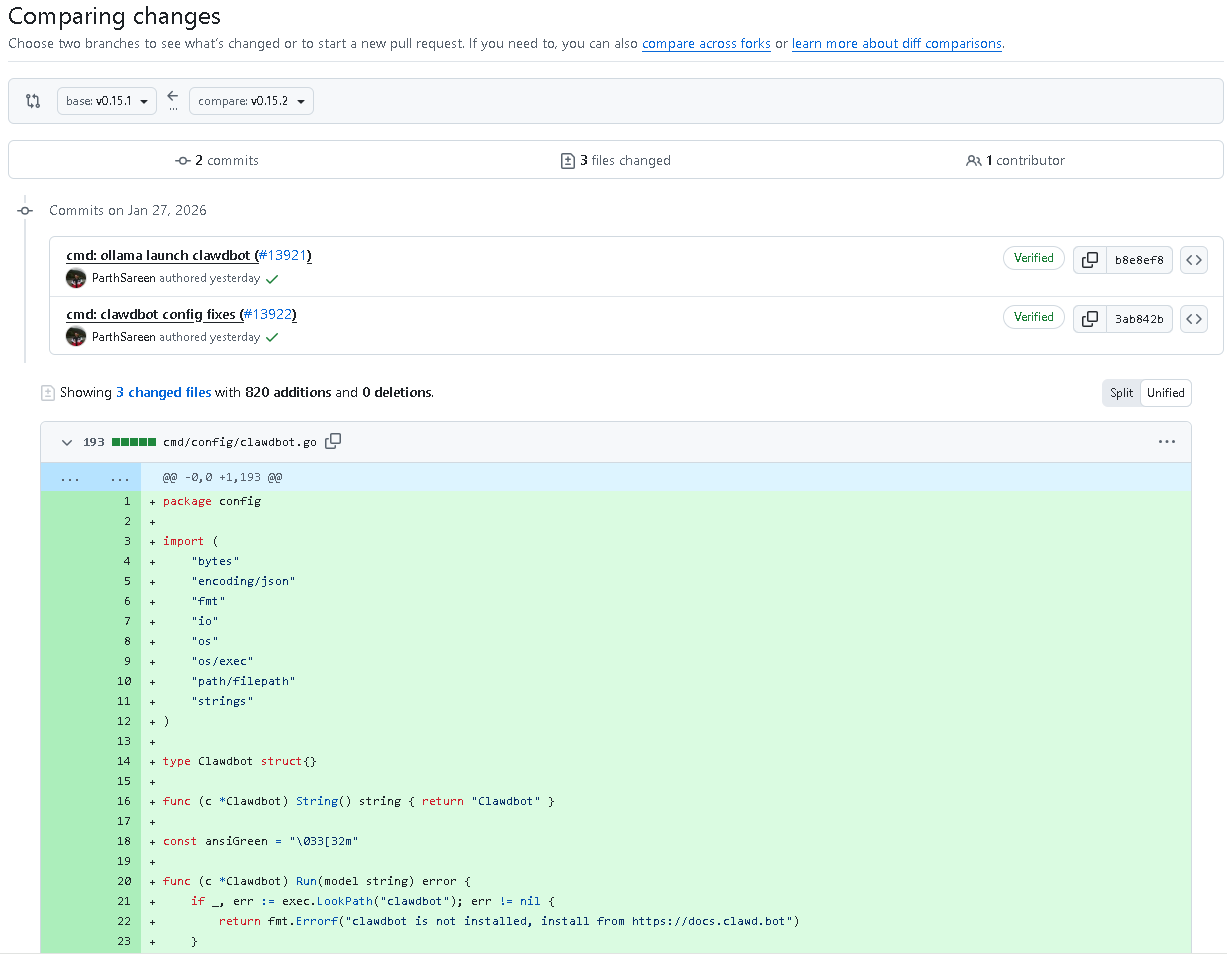 2026年1月26日,Ollama正式发布了 v0.15.2 版本。本次更新内容虽不多,但极具技术含量。它带来了全新的 Clawdbot 集成,并新增了一个关键命令: