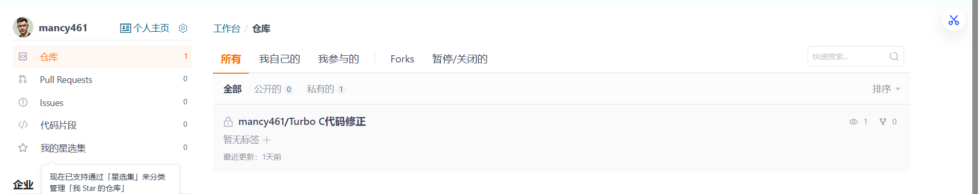 - 点击创建,即可生成空的 Gitee 远程仓库。