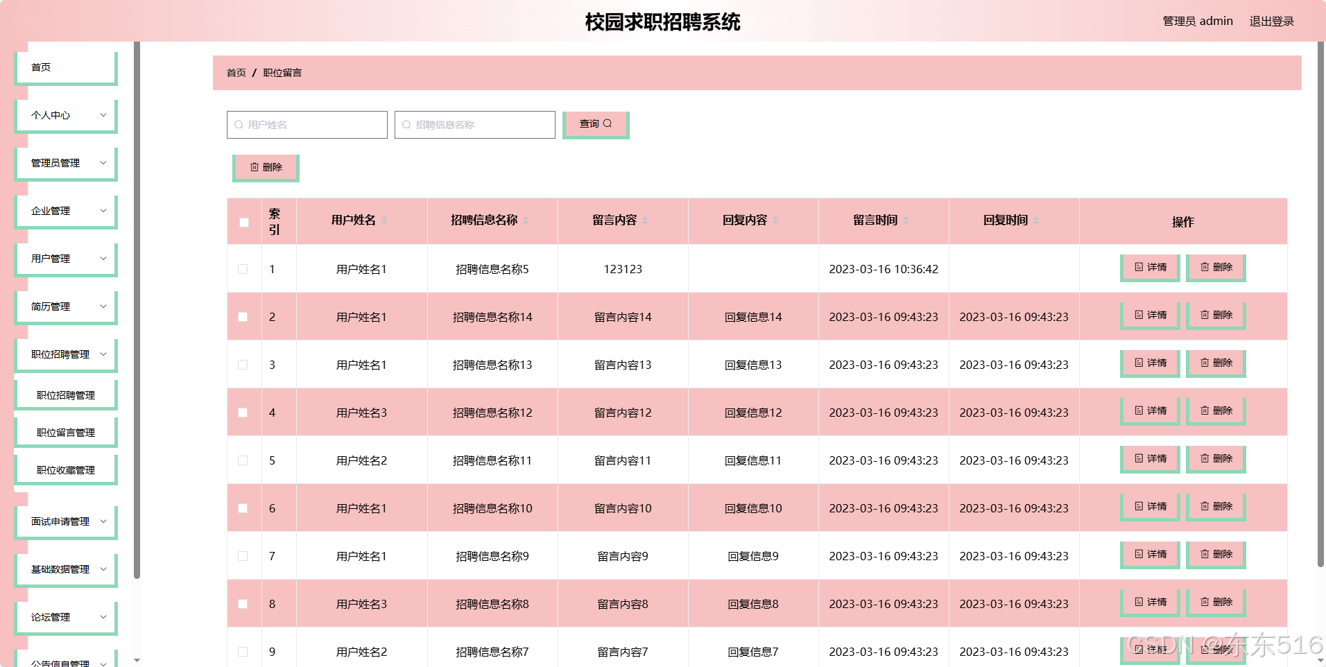 项目基于SpringBoot框架,前后端分离架构,后端为SpringBoot+前端Vue。+vue校园求职招聘系统设计与实现 本文旨在设计并实现一个基于Vue.js的校园求职招聘系统,该系统旨在为校园内的求职者提供一个高效、便捷的求职平台。通过对用户需求的深入分析,本文提出了一套完整的系统设计方案,包括用户界面设计、功能模块划分以及数据库设计。在系统实现过程中,采用了Vue.js框架进行前端开发,利用Bootstrap框架进行页面布局和样式设计,确保了系统的响应式和兼容性。此外,本文还对系统进行了测试与优化,以确保其稳定性和可用性。通过实际运行和用户反馈,验证了系统的有效性和实用性,为校园招聘工作提供了有力的技术支持。