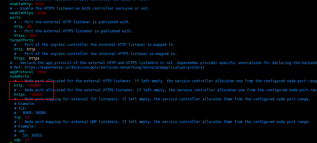 #修改 http: "" 和 https: "" 为 30080 和 30443
