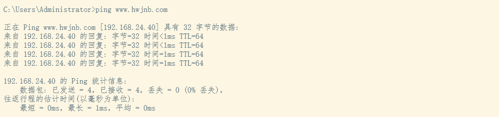 这里先配置主机hosts,解析到 VIP 192.168.24.40,使用本机 ping 域名能通表示解析成功