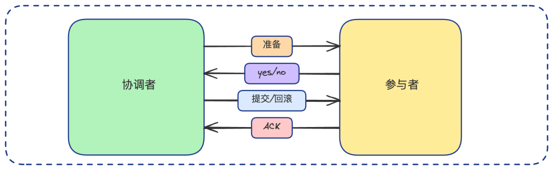 两阶段提交(Two-Phase Commit)是分布式事务中最广为人知的协议。其核心思路可以概括为:引入一个协调者"=(Coordinator),由它来统一指挥所有参与者"=(Participant)的行为,要么一起提交,要么一起回滚。