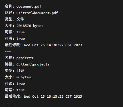 System.out.println("目录详细信息:");