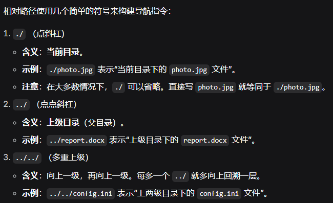 特点:它依赖于你当前的位置。在不同的目录下,指向同一个文件的相对路径是不同的
