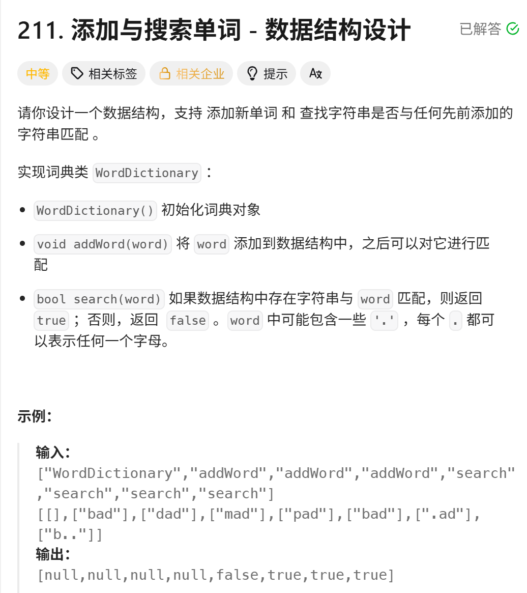 211. 添加与搜索单词 - 数据结构设计