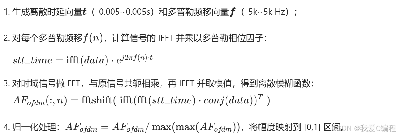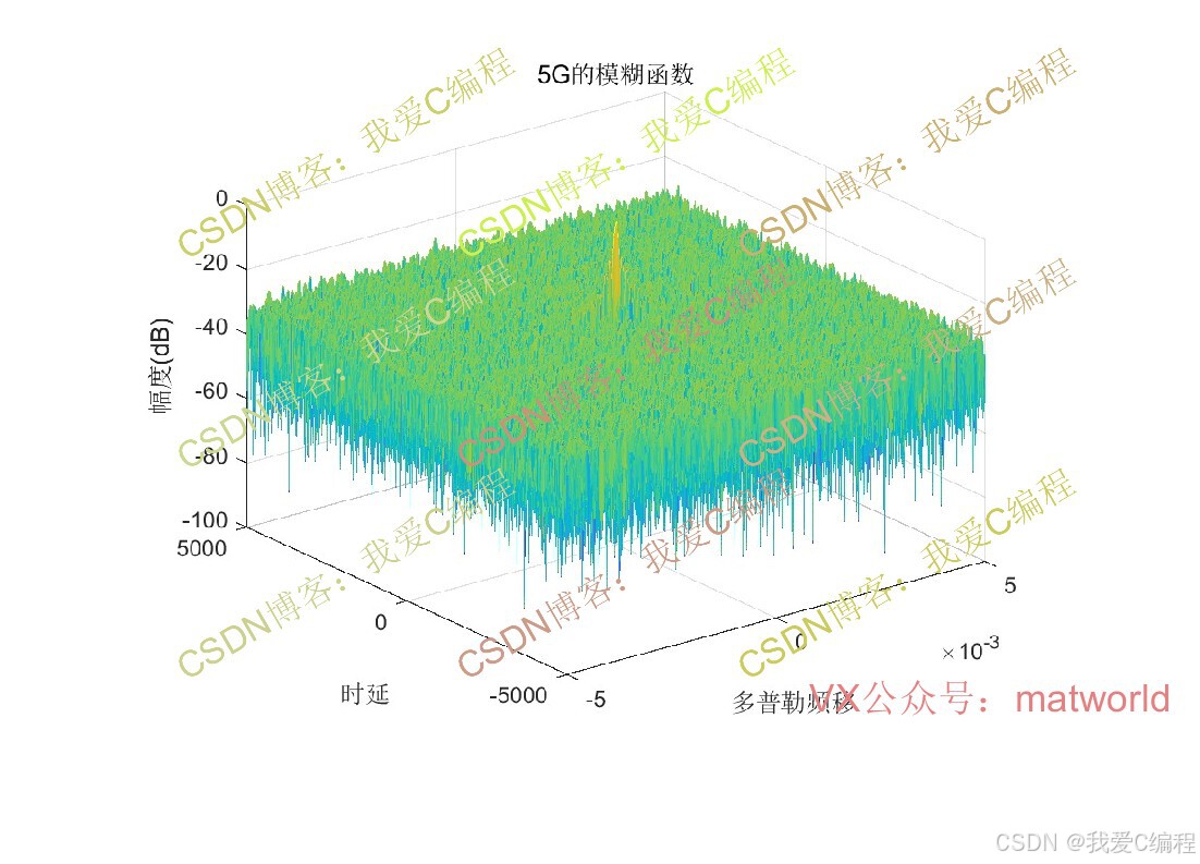 模糊函数(Ambiguity Function, AF)是分析信号时延-多普勒频移二维分辨能力的核心工具,用于评估信号在雷达、通信中的目标探测(距离 + 速度)性能。