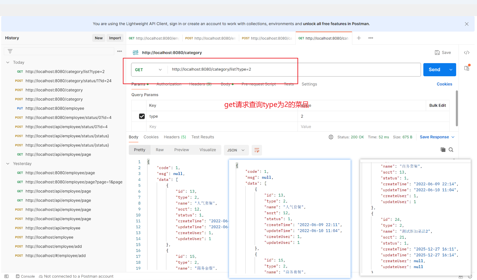 @Insert("insert into category(type, name, sort, status, create_time, update_time, create_user, update_user)" +
