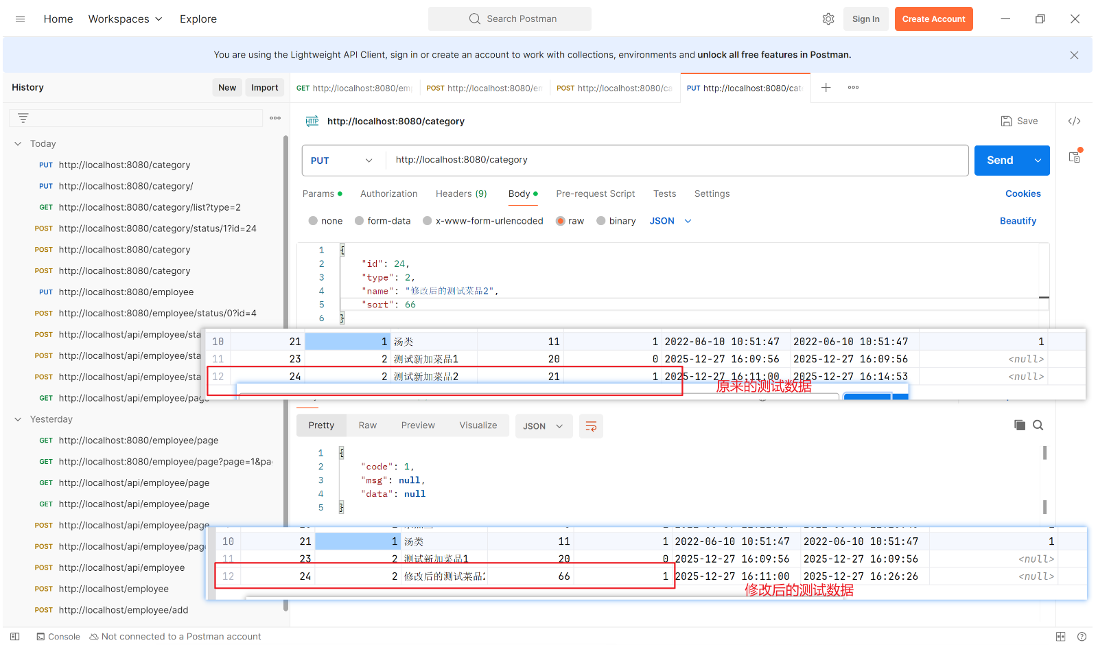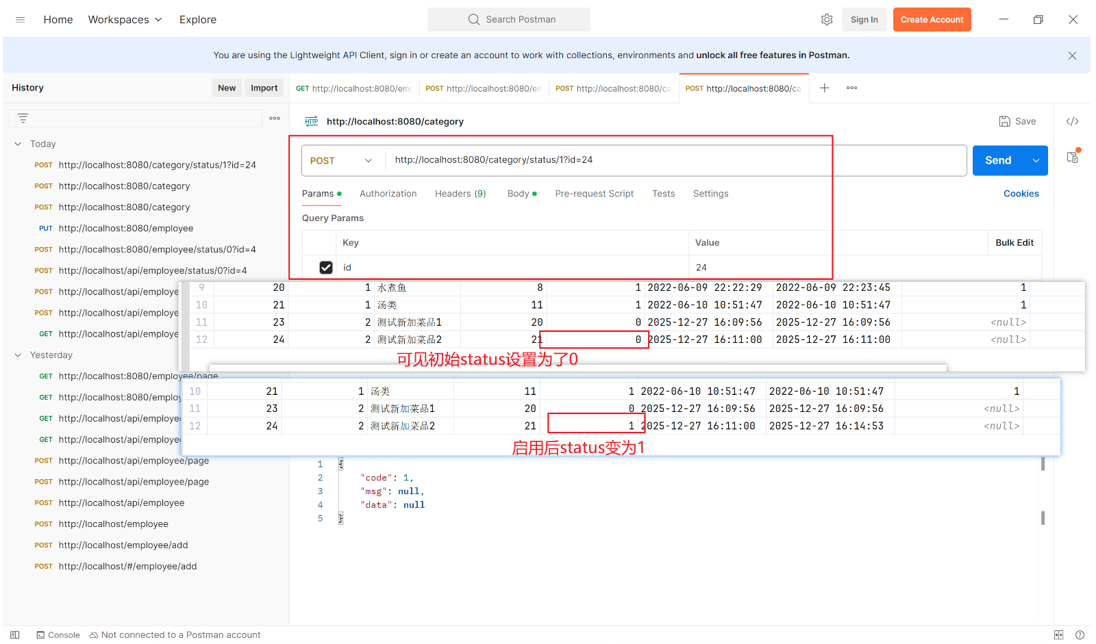 // 需注意 update 方法传入的是 CategoryDTO 类型(未设置 status), Category 类型才有 status 字段