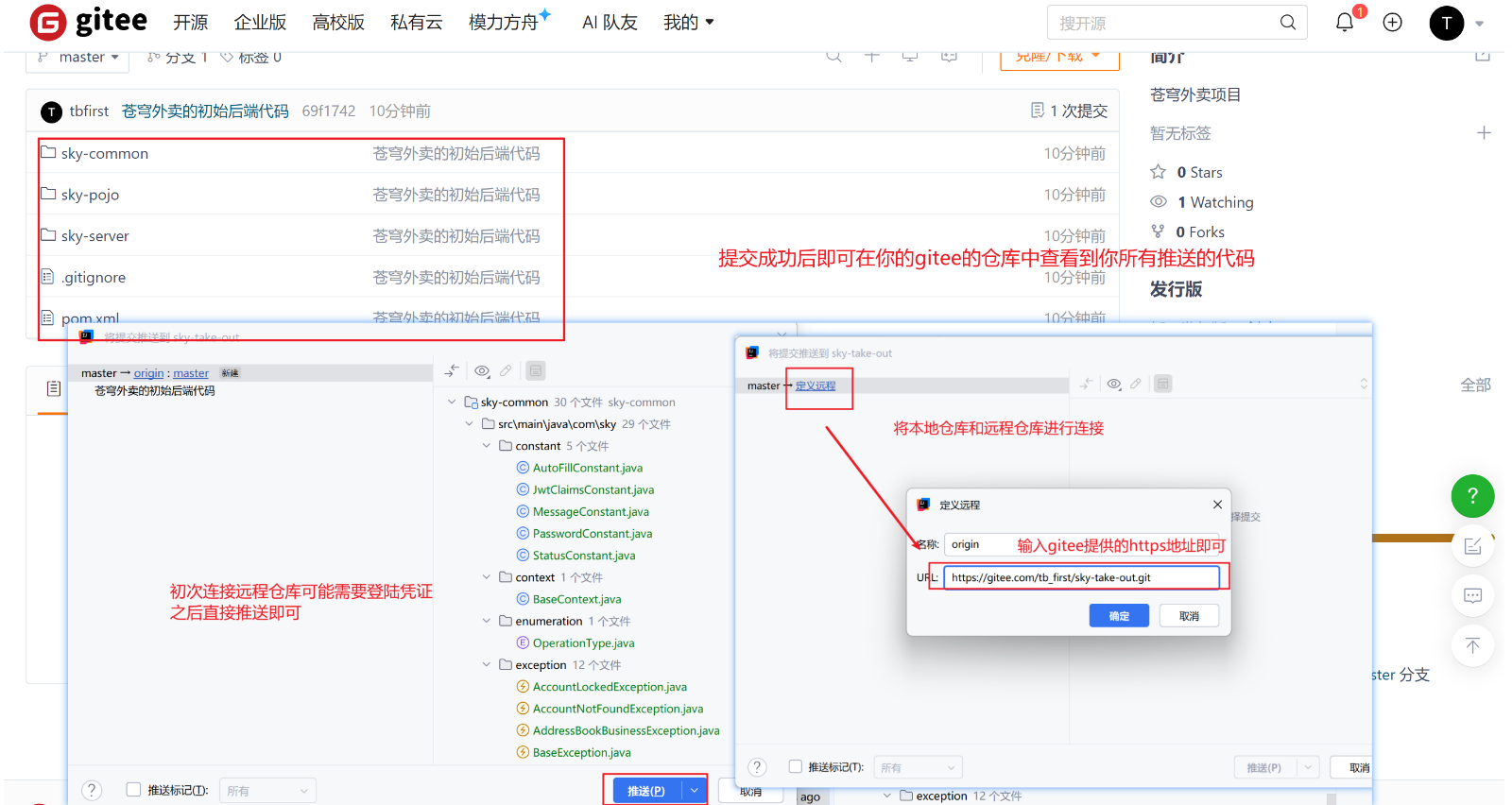 2.2、推送代码到仓库