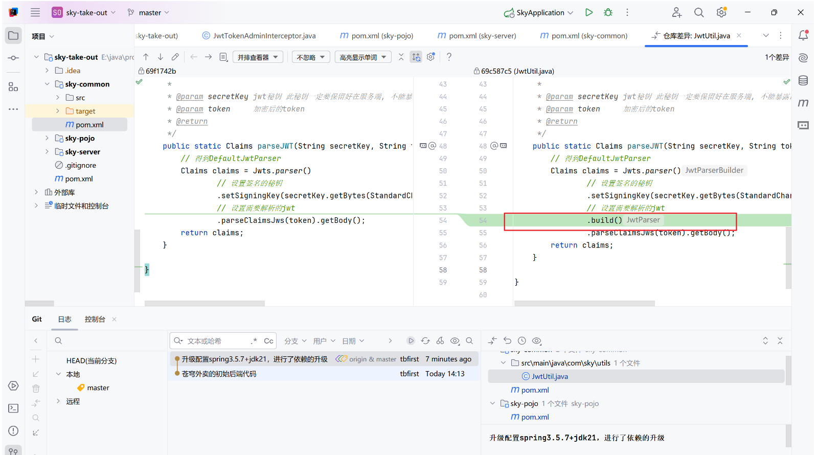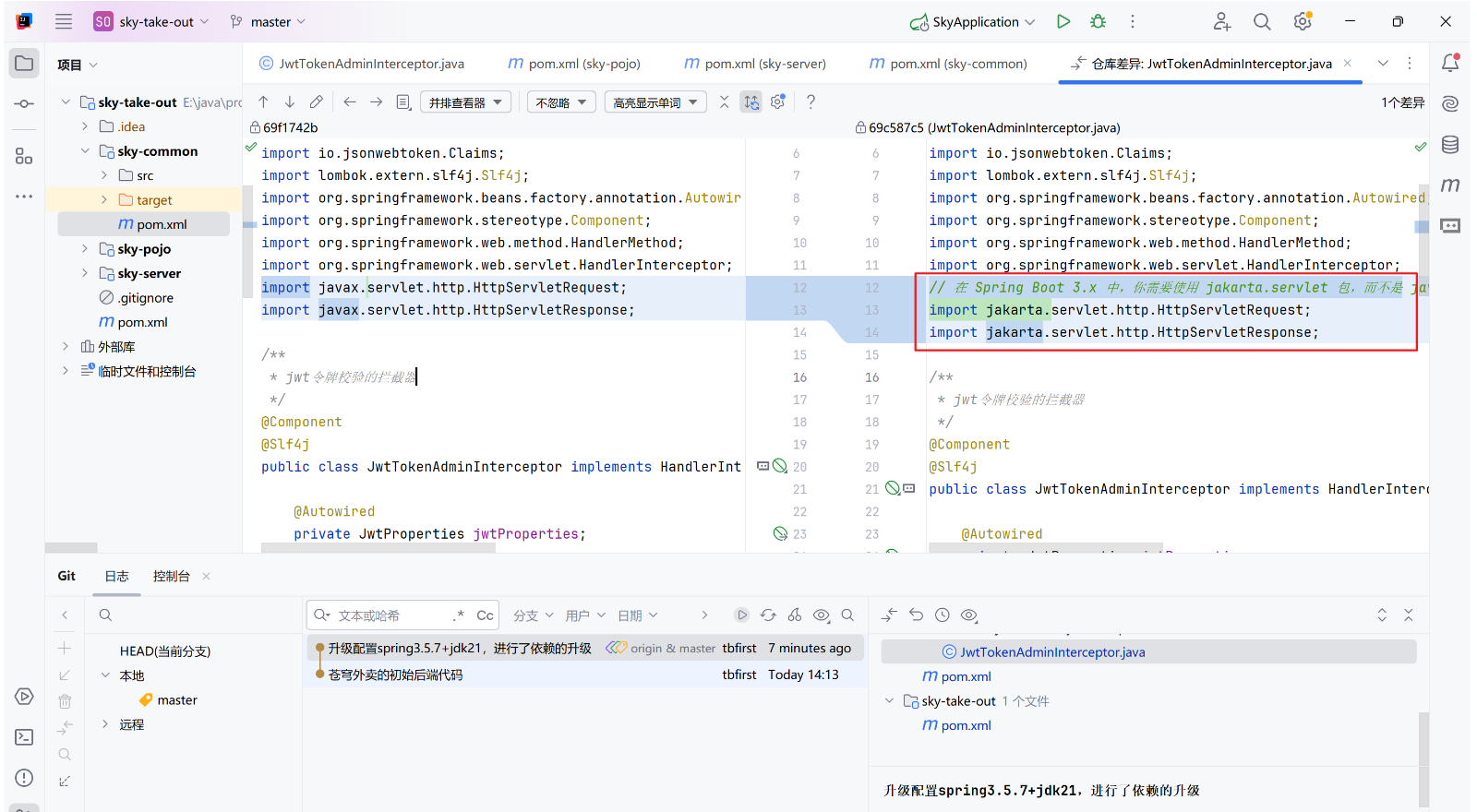 将原来的配置升级为springboot3.5.7+jdk21,将依赖中的版本升级并进行匹配,详见远程仓库的第二次提交