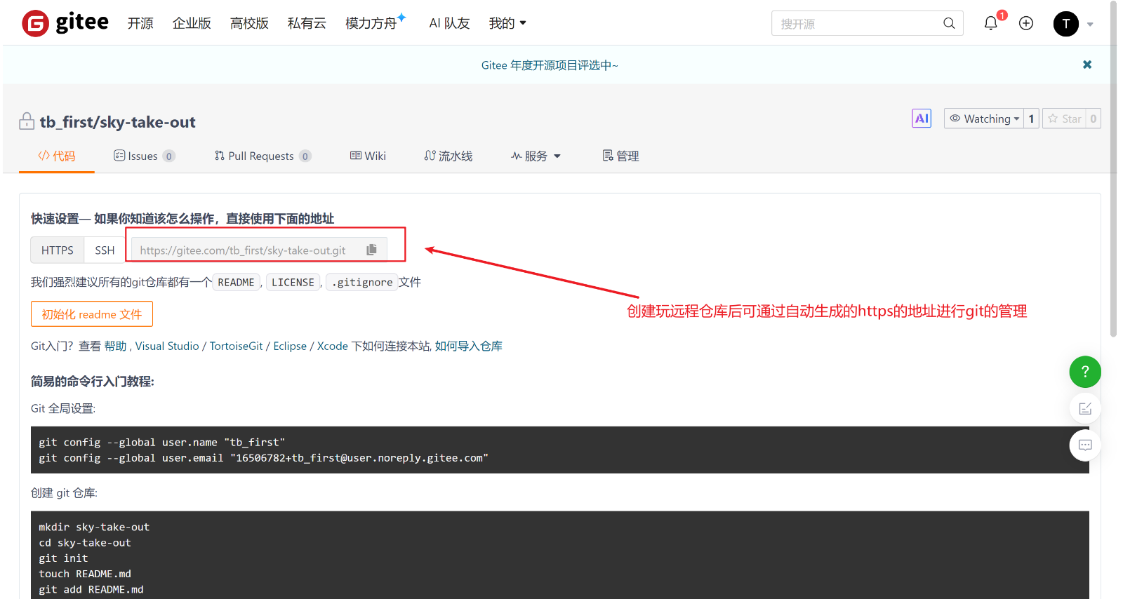 - 创建远程仓库