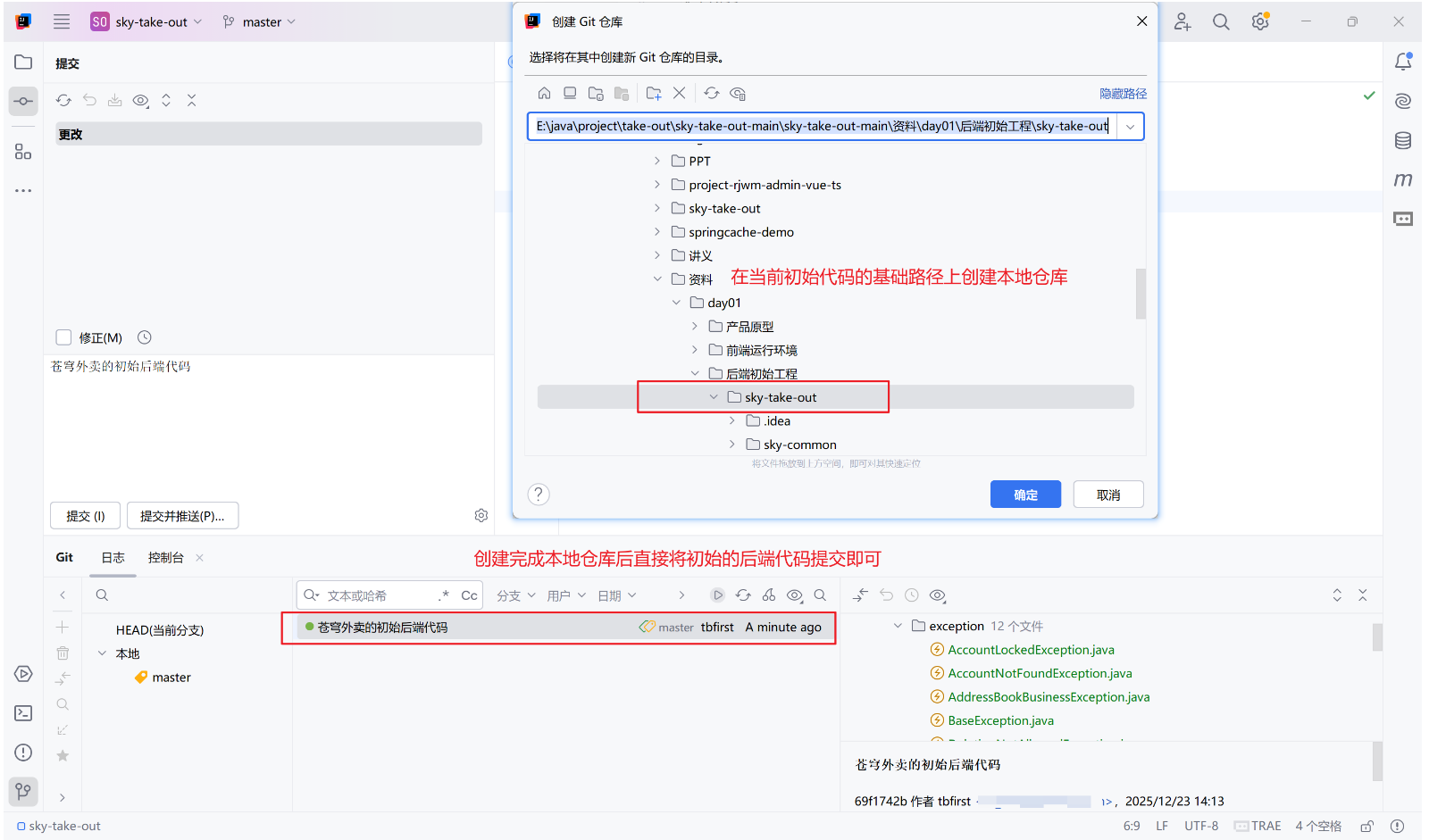 - 以初始的后端代码为基础路径创建本地仓库