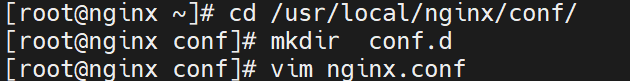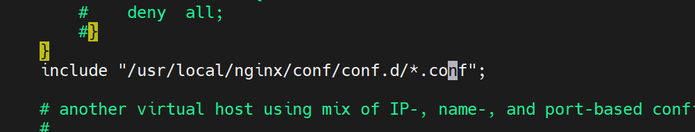 # nginx.conf 中增加 include "/usr/local/nginx/conf/conf.d/*.conf";