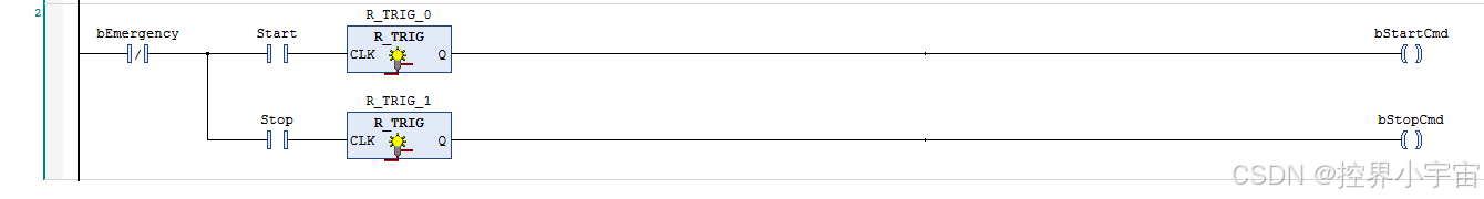 - 按钮保持按下状态时,bStartCmd=FALSE;按钮释放后再次按下,才会再次触发上升沿,生成启动命令;