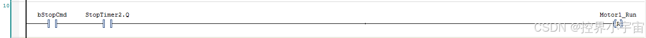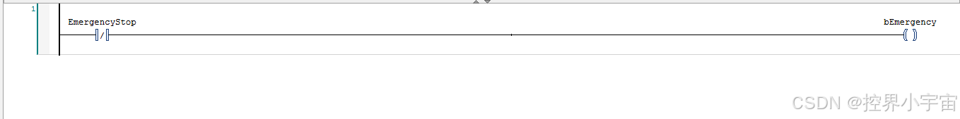 - EmergencyStop:常闭触点(程序中用「|/|」表示),对应现场急停按钮的常闭接线;