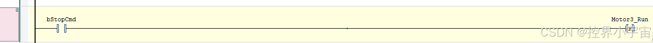 逻辑解析: 停止命令(bStopCmd=TRUE)触发后,立即执行复位指令(RST),Motor3_Run=FALSE(M3接触器断开,电机立即停止)。