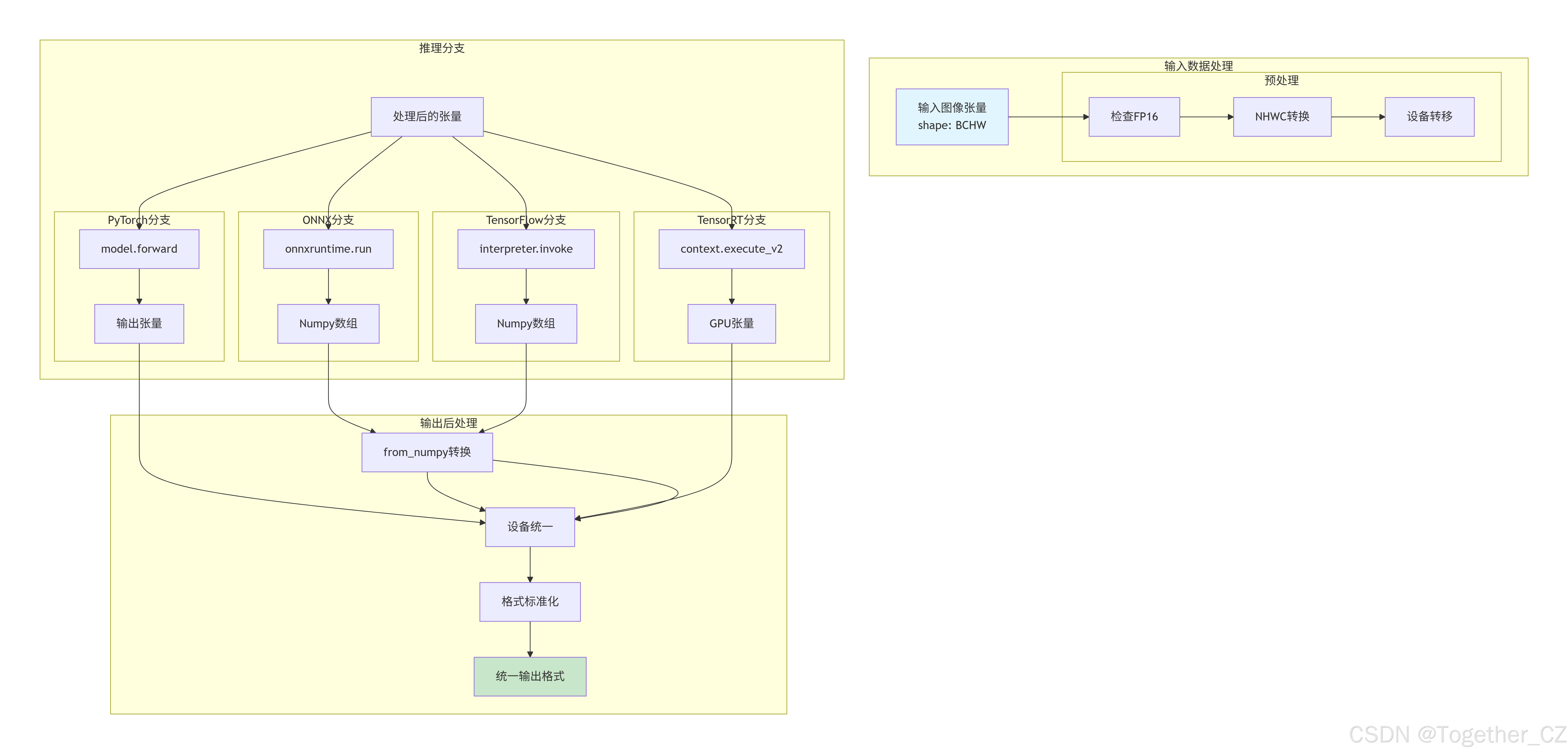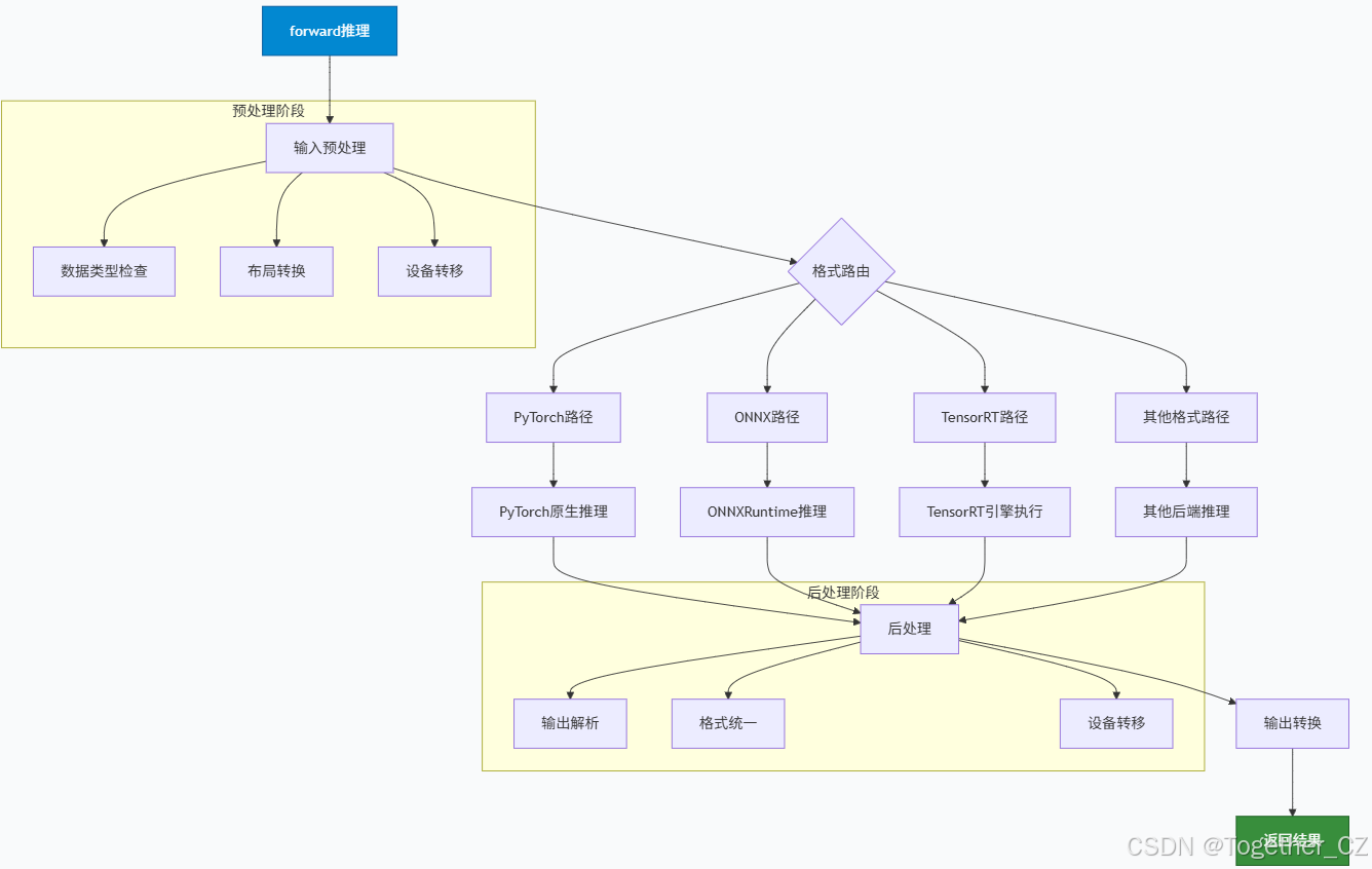 AutoBackend 模块是 Ultralytics 的统一推理后端管理器,它的核心设计理念是抽象化 和统一接口。通过自动检测模型格式并加载对应的推理引擎,为用户提供了完全透明的多格式模型推理能力。模块支持从 PyTorch 到边缘计算芯片的20多种格式,自动处理设备分配、数据预处理和后处理,让开发者能够专注于应用逻辑而不必关心底层实现细节。