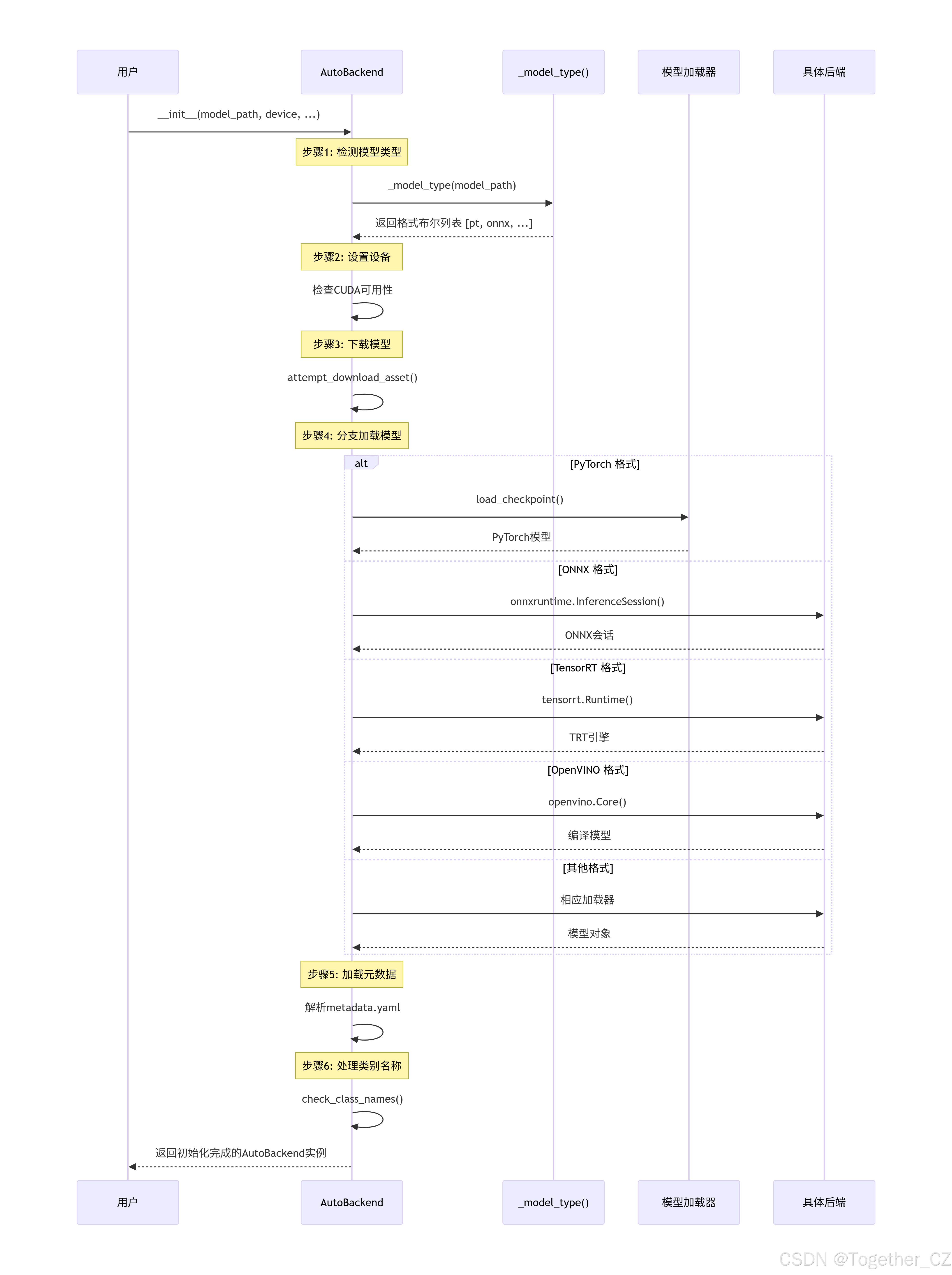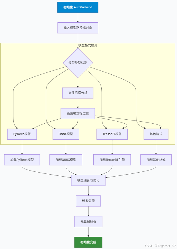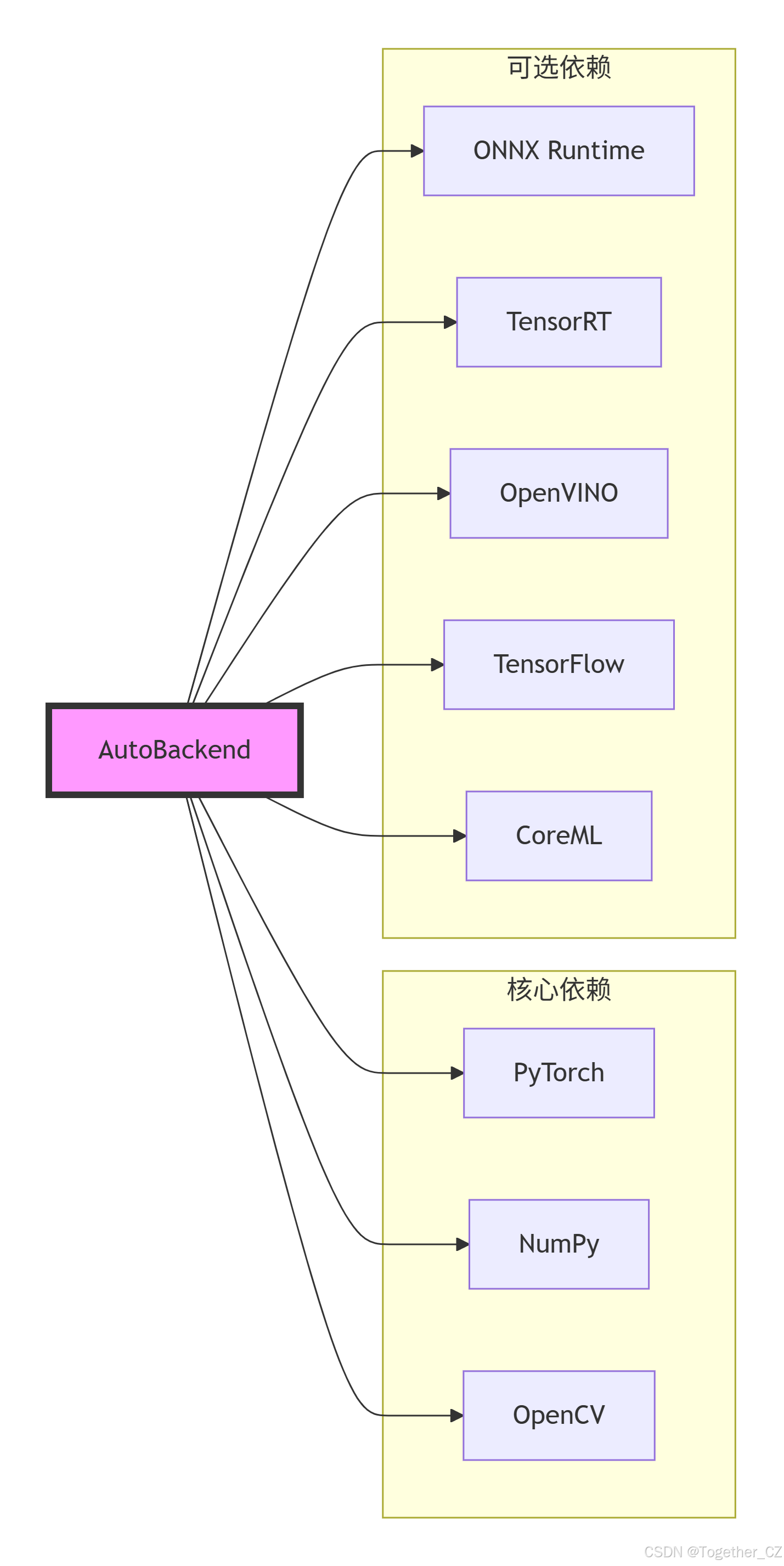 AutoBackend 类是一个高度灵活和强大的模型加载和推理抽象层,其主要特点和功能包括: