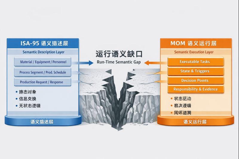 当 MOM 系统试图仅依赖 ISA-95 来承担运行期职责时,必然出现一个"运行语义缺口"。