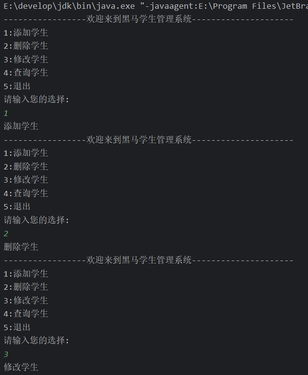 System.out.println("-----------------欢迎来到黑马学生管理系统---------------------");