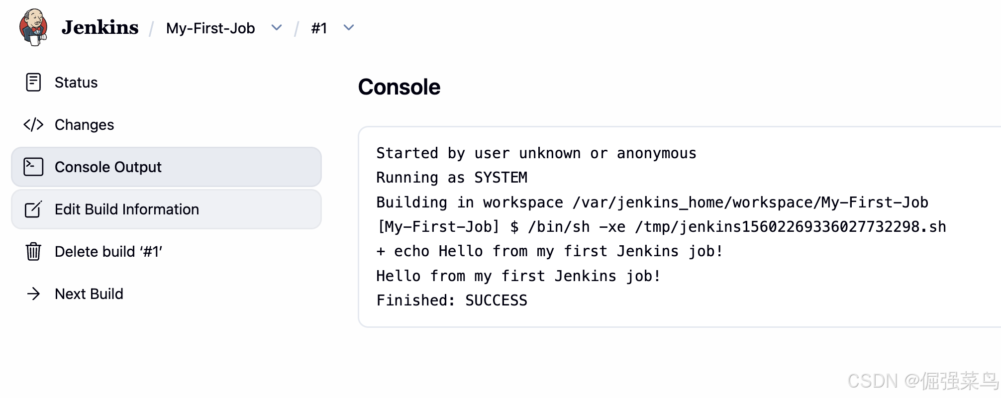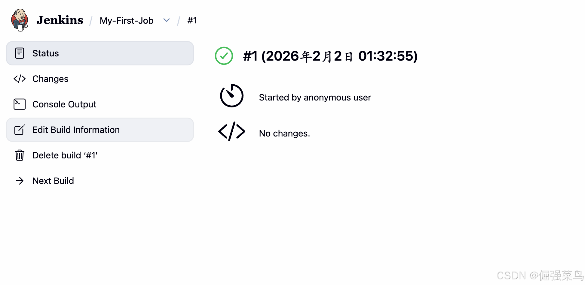 点击构建编号 #1 可以进入该特定构建的详情页面