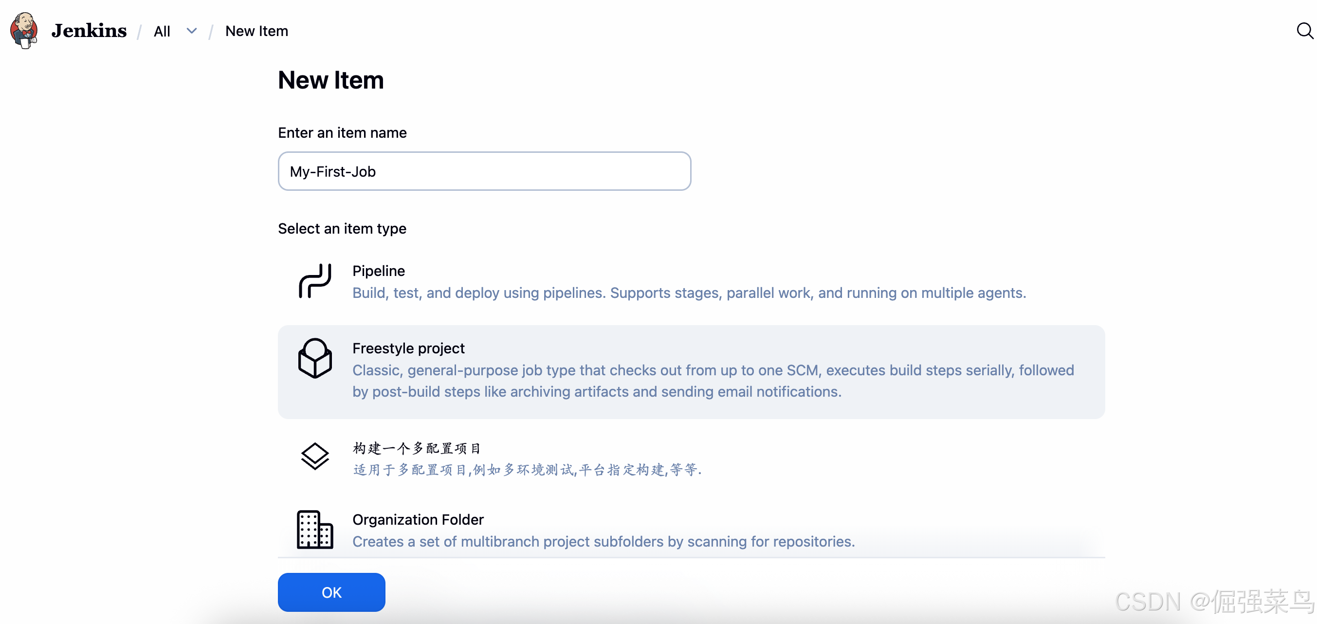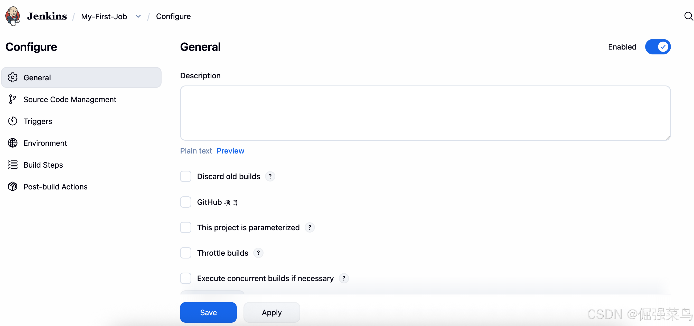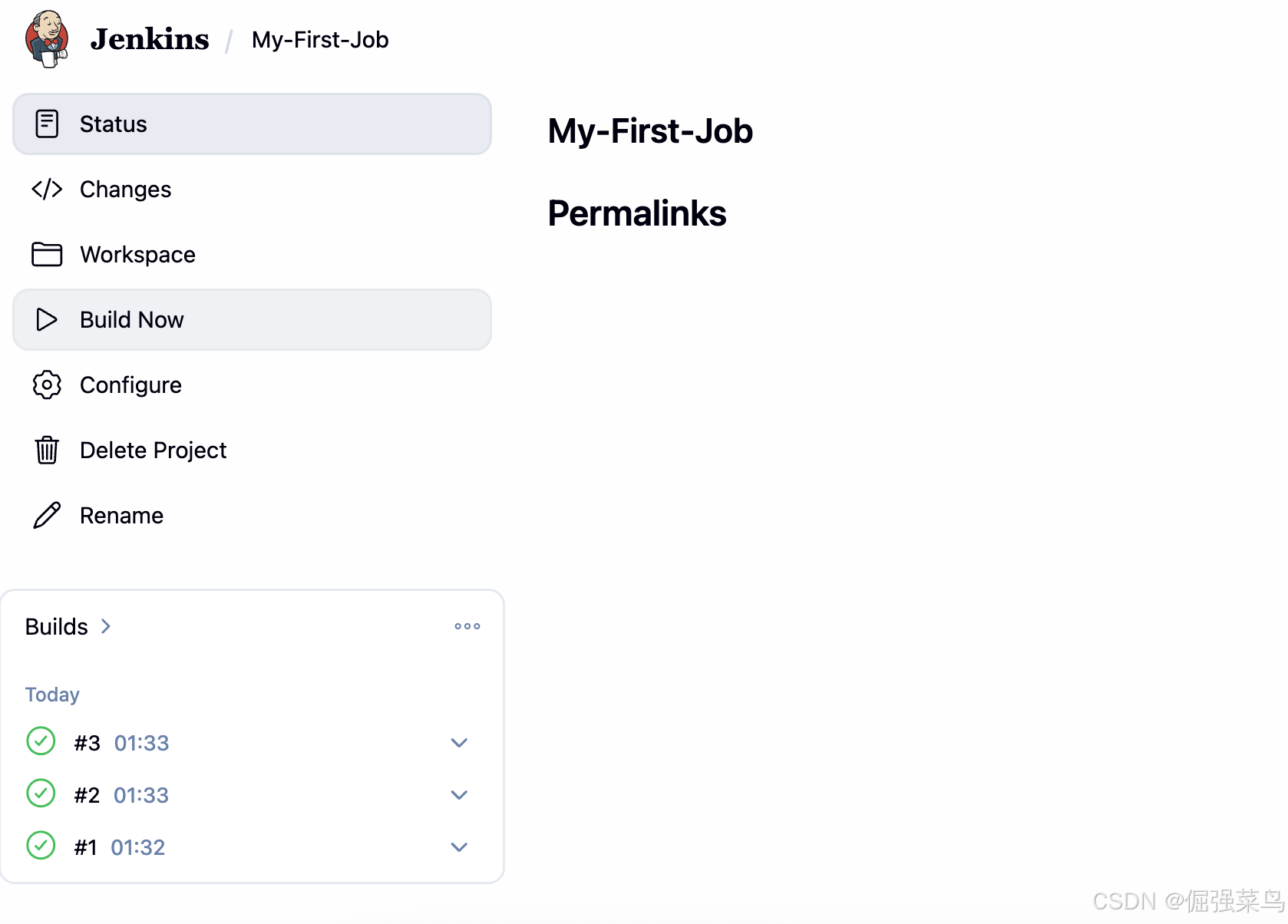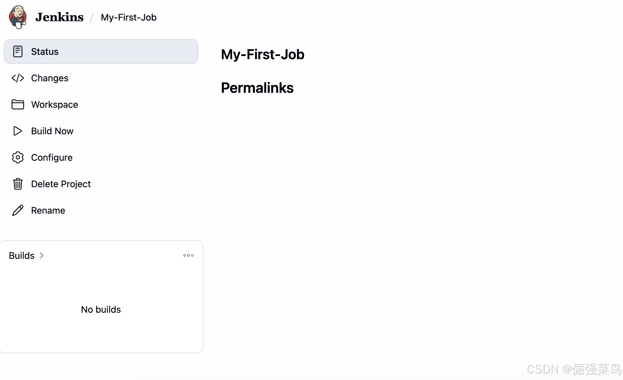 点击 Save, Jenkins 会重定向到新创建的项目 My-First-Job 的主页面