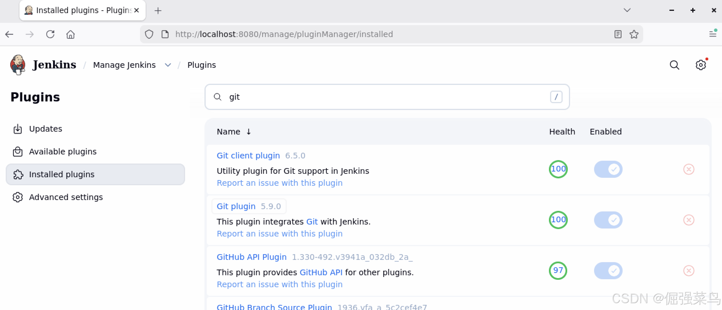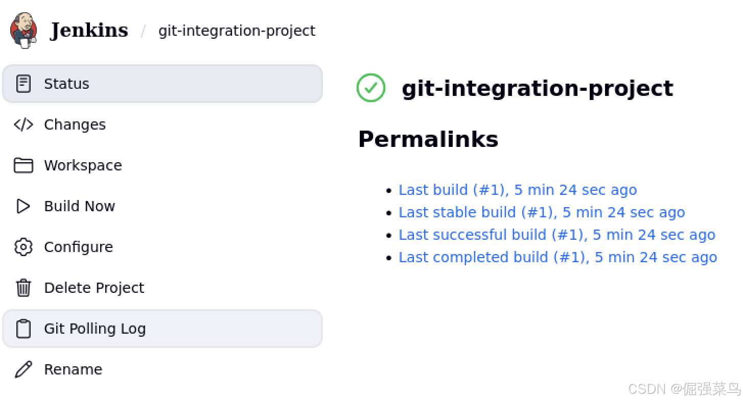 git-integration-project 页面,在左侧边栏中,你会看到一个名为 Git Polling Log 的新选项,此页面显示了轮询活动。